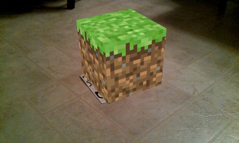 That's Right! A giant grass block is in the middle of my kitchen floor! The grass block is rendered on top of a piece of paper called a marker. As you know, the grass block is technically not there but it acts as if it is, if you rotate the marker, the object also rotates. To give you a better understanding of how this works, here is a video demonstration.